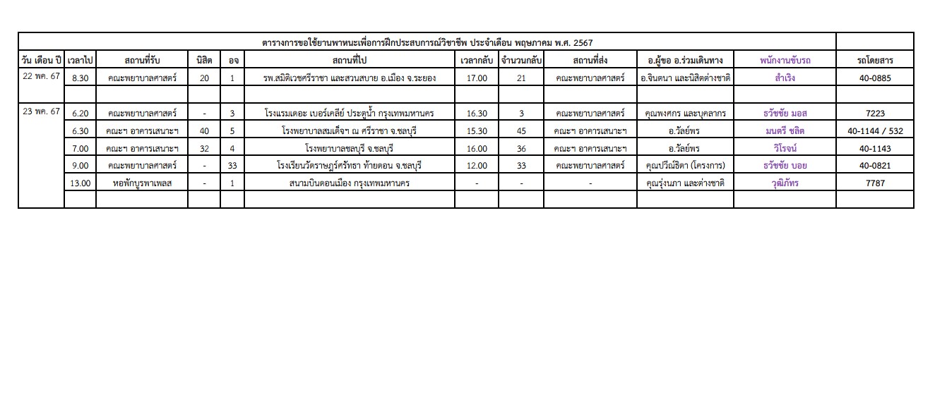 ตารางรถขอใช้รถ วันที่ 23 พฤษภาคม พ.ศ. 2567